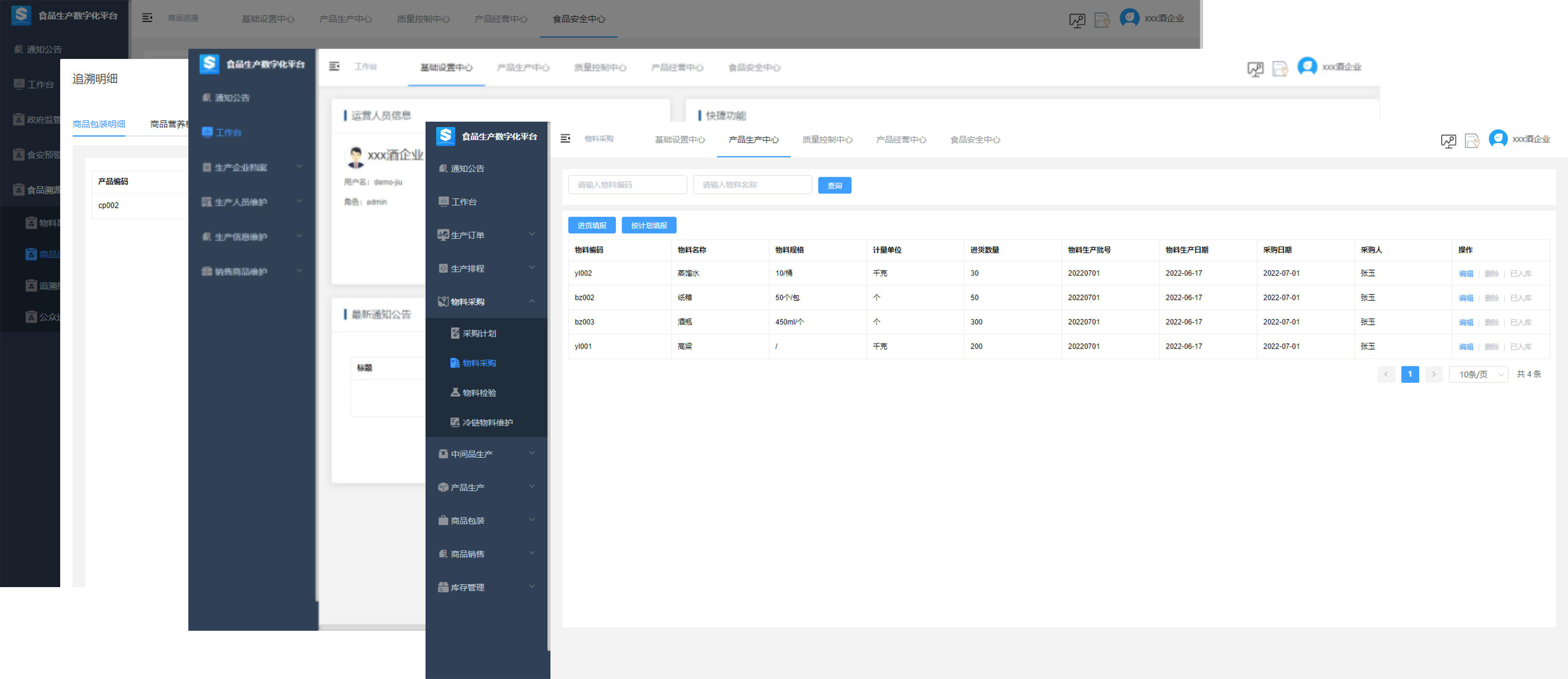 面向食品企業(yè)用戶研發(fā)‘微門戶’應用,企業(yè)人員可通過‘微門戶’實現(xiàn)快速登錄、工具使用、增加組件等。平臺提供LED大屏幕、手機、平板、電腦、多媒體等多種應用方式,滿足不同場景下的使用需求。